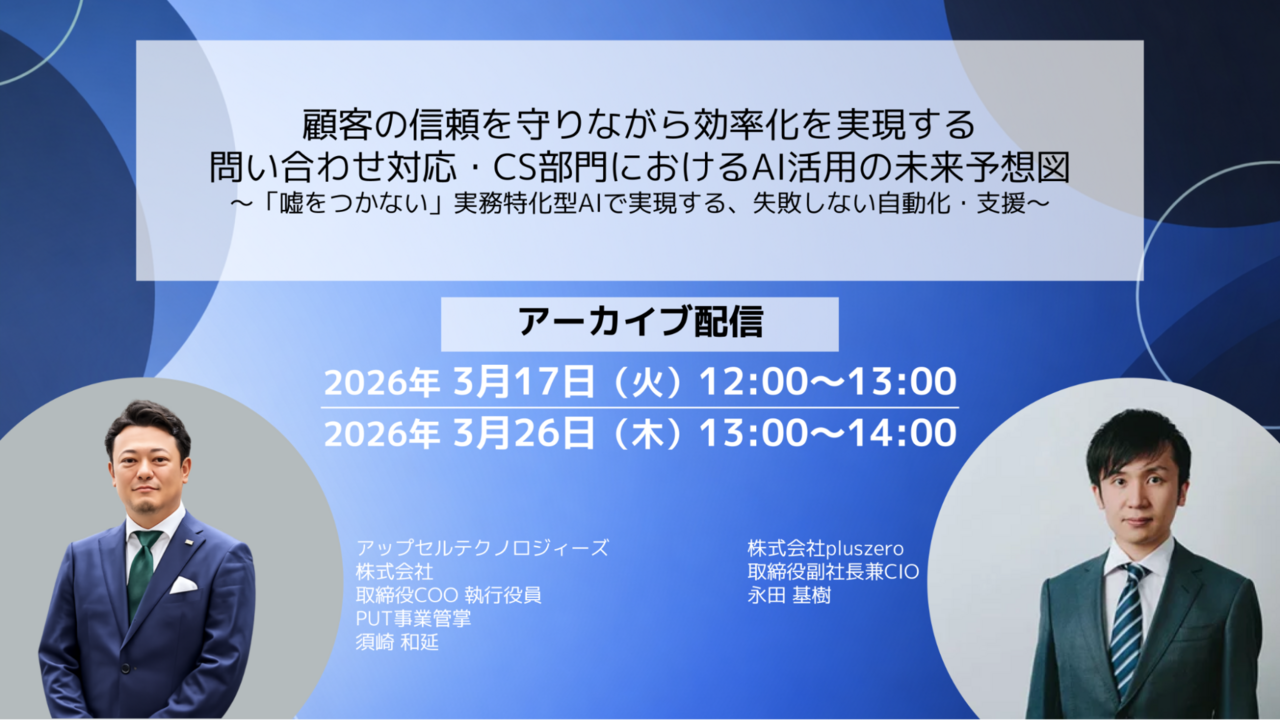 顧客の信頼を守りながら効率化を実現する 問い合わせ対応・CS部門におけるAI活用の未来予想図 ~「嘘をつかない」実務特化型AIで実現する、失敗しない自動化・支援~ 【アーカイブ配信】